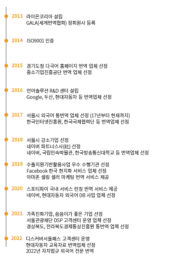 연결, 그리고 성장 라이온코리아는 2013년 8월 시작해 11년 동안 단순히 번역이 아닌 그 이상의 가치를 실현해 나가고 있어요.